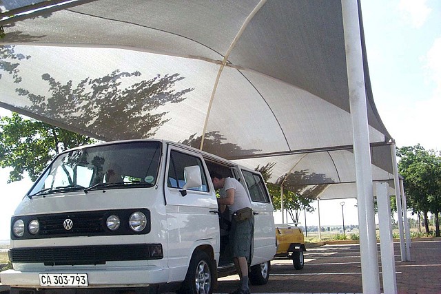 Na parkovitích jsou tady pro auta stříky, které stíní, aby v autě nebylo vedro.